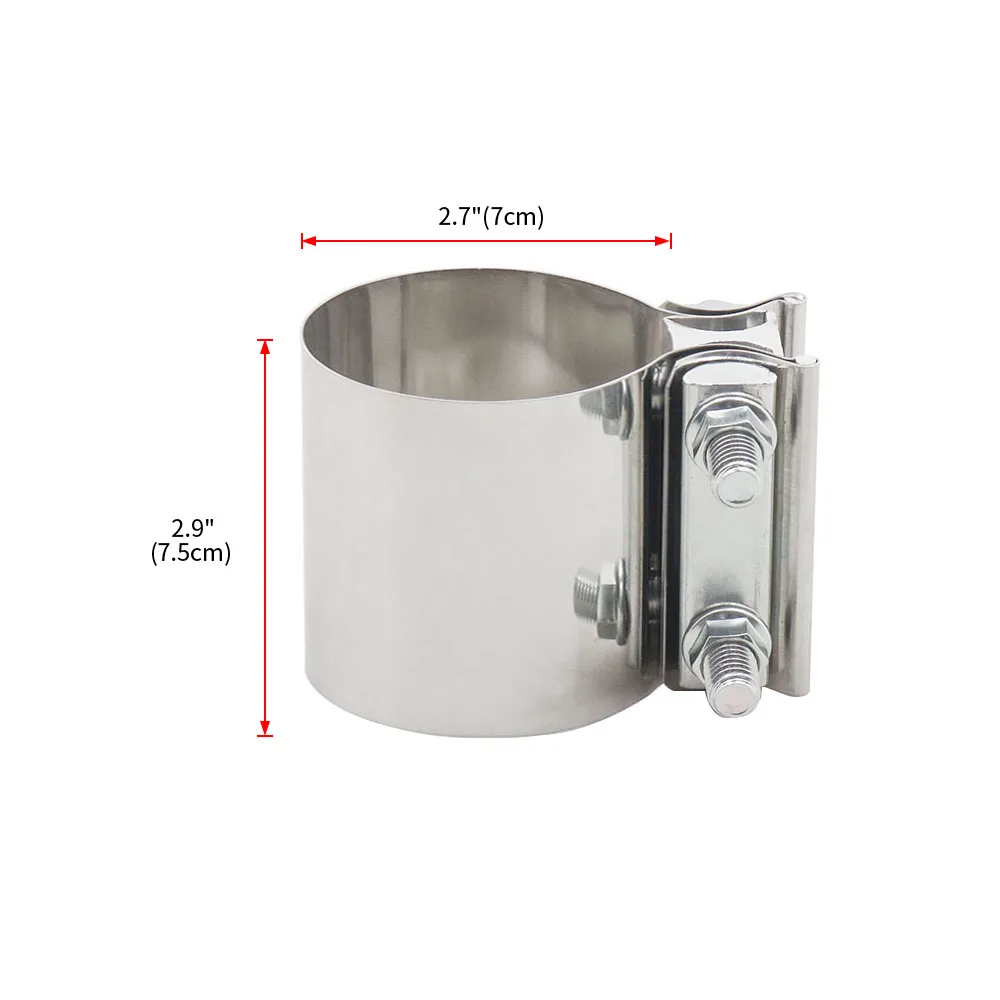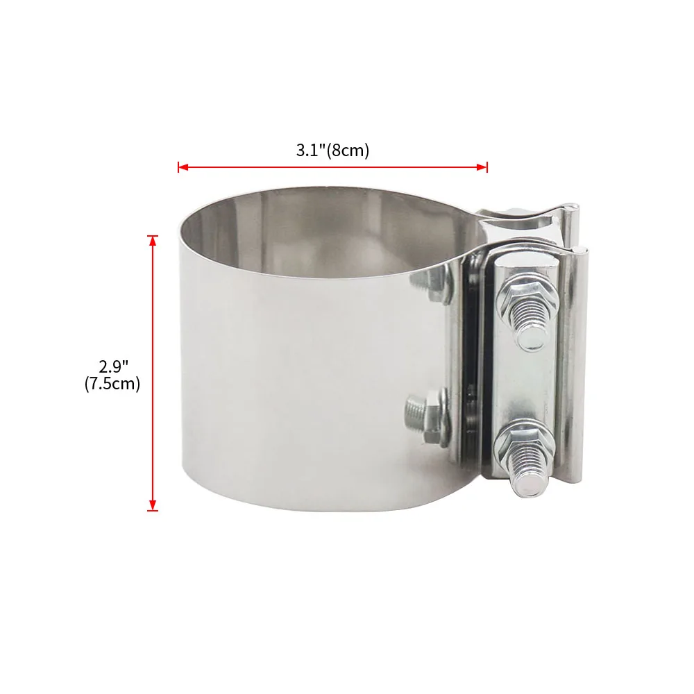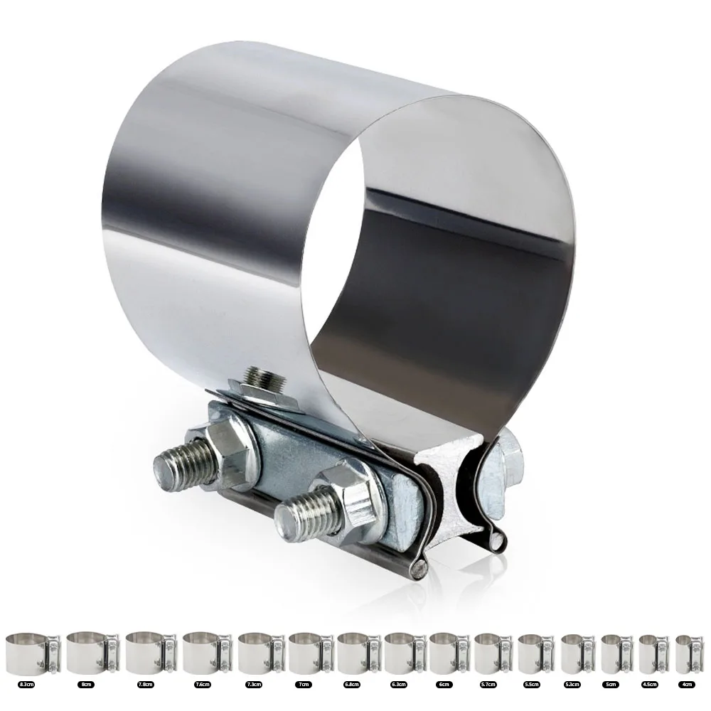 This type of lap joint band clamp is much easier to separate should a componentever need to be removed or replaced.High-strength fasteners provide nice even clamping pressures without distortingthe pipe,and superior sealingcapability prevent exhaust gas and noise leaks.Especially use in exhaust pipes connection.
